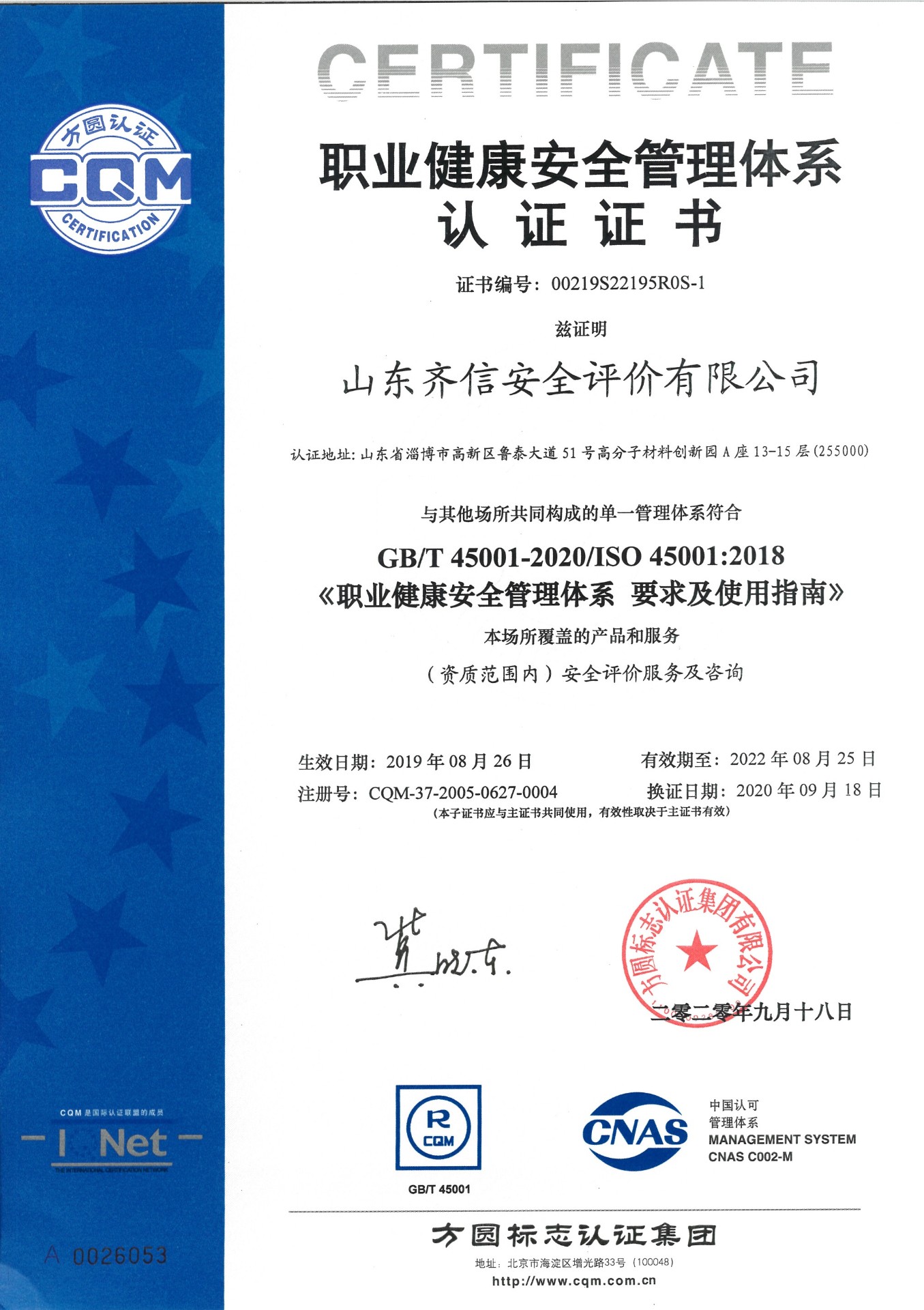 山東齊信安全評(píng)價(jià)有限公司成立于2005年3月,注冊(cè)資本300萬(wàn)元人民幣,固定資產(chǎn)總值804.8728萬(wàn)元。法定代表人徐光明,注冊(cè)地址及辦公地址位于淄博高新區(qū)魯泰大道51號(hào)高分子材料創(chuàng)新園A座13-15樓。2005年9月取得安全評(píng)價(jià)機(jī)構(gòu)乙級(jí)資質(zhì)。自國(guó)家應(yīng)急部1號(hào)令實(shí)施以來(lái),公司于2020年1月15日取得新安全評(píng)價(jià)資質(zhì),業(yè)務(wù)范圍包括:陸上油氣管道運(yùn)輸業(yè);石油加工業(yè),化學(xué)原料、化學(xué)品及醫(yī)藥制造業(yè);金屬冶煉。2018年12月21日取得安全生產(chǎn)標(biāo)準(zhǔn)化二級(jí)評(píng)審單位,評(píng)審范圍:危險(xiǎn)化學(xué)品、紡織、建材、輕工、冶金、機(jī)械。 公司現(xiàn)有人員41人,其中專(zhuān)職安全評(píng)價(jià)師37人,注冊(cè)安全工程師26人,研究員1人、碩士5人、雙學(xué)士1人,山東省安全專(zhuān)家?guī)鞂?zhuān)家1人、教授級(jí)高工1人,高級(jí)工程師8人、工程師22人,專(zhuān)職危險(xiǎn)化學(xué)品標(biāo)準(zhǔn)化評(píng)審員、工商貿(mào)標(biāo)準(zhǔn)化評(píng)審員30人,本科以上學(xué)